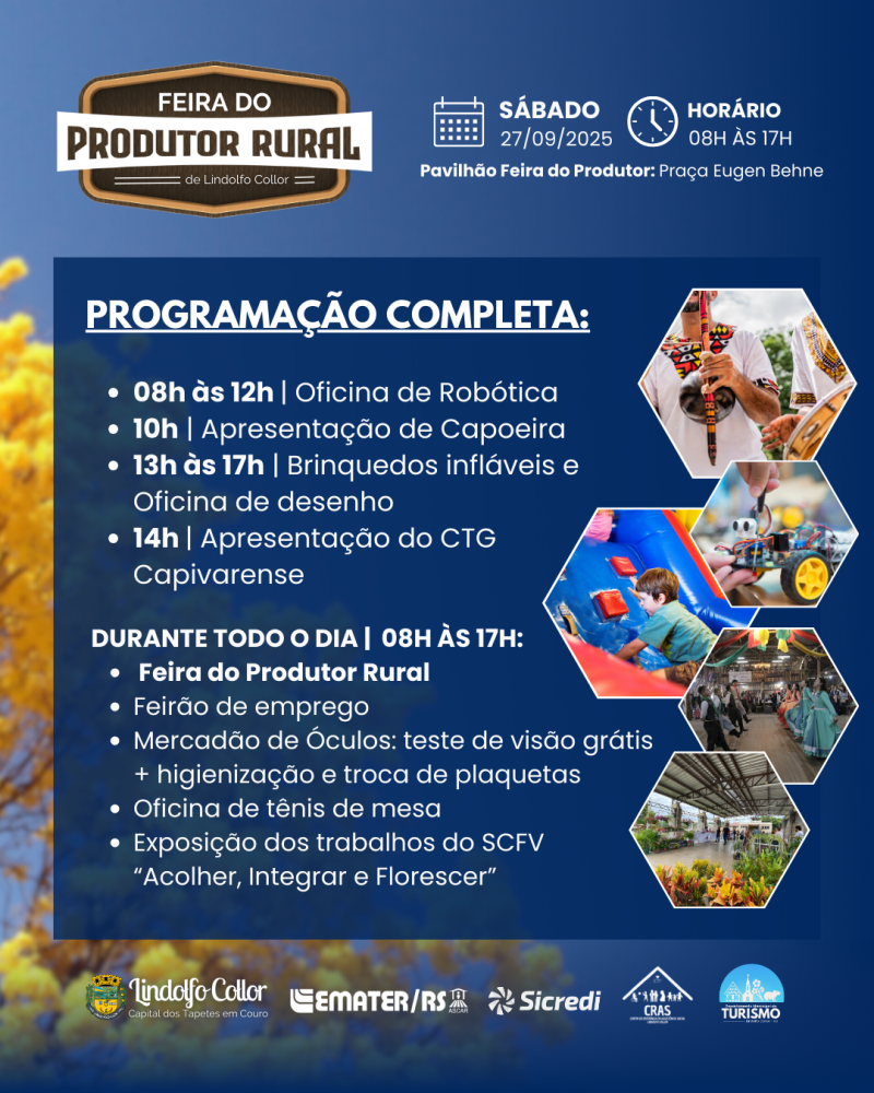 No próximo sábado, 27/09, o Pavilhão da Feira do Produtor recebe uma programação especial para toda a comunidade!